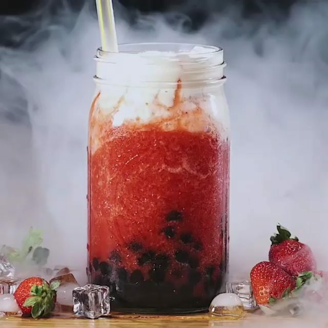 d. Tuangkan ke vdalam gelas. Tambahkan strawberry atau daun mint sebagai garnish.