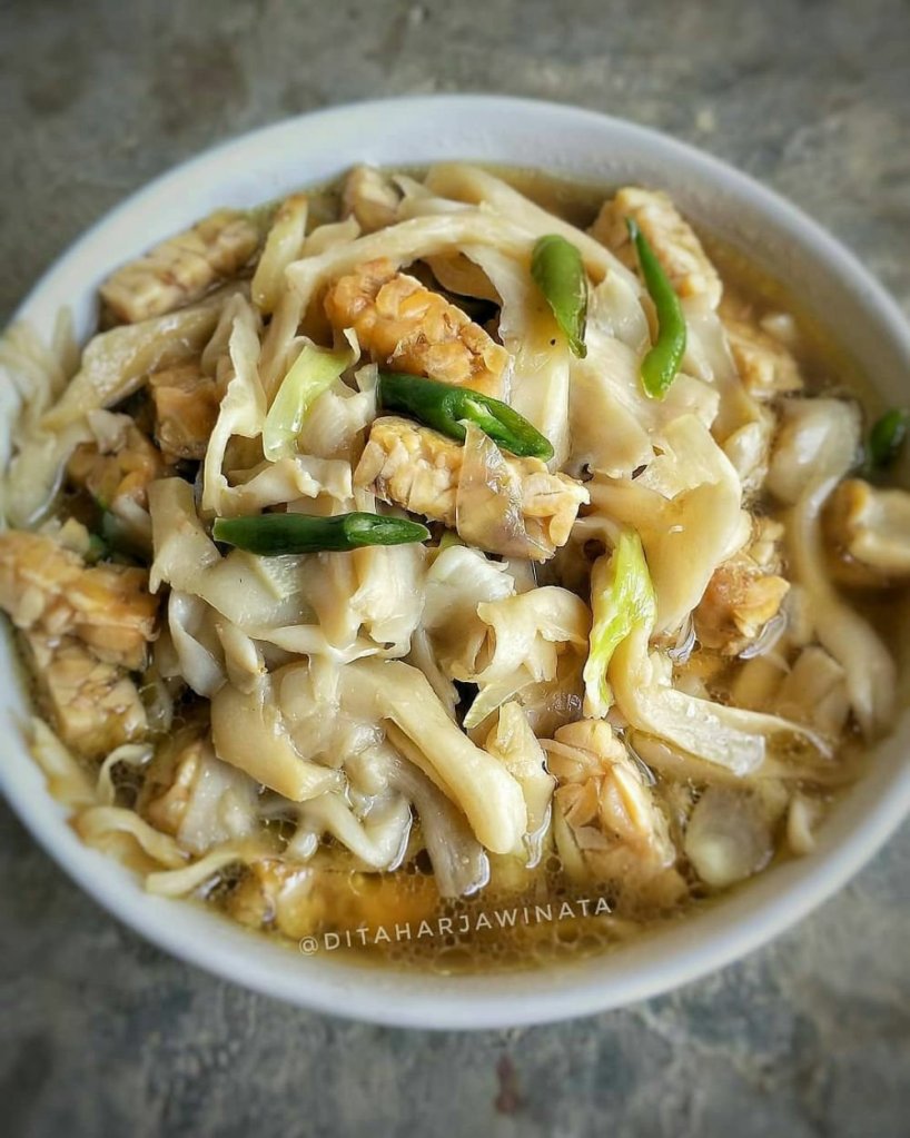 – Goreng tempe setengah kering. Sisihkan.